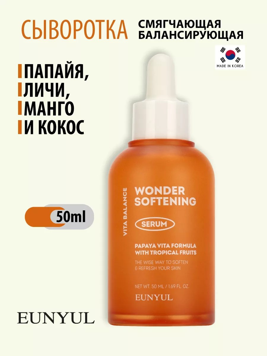 This skin care serum is a concentrated product that deeply nourishes and moisturizes the skin. It is designed to soften, smooth the skin, and reduce the appearance of fine lines and wrinkles. Contains papaya, mango, lychee, niacinamide, and peptide extracts that work together to provide intense hydration, maintain youthfulness, and protect the skin. Regular use of the serum helps skin look healthier, more radiant, and younger. Suitable for all skin types and is effective in combating dryness, tightness, and other skin concerns. Directions: After using toner, take a small amount of serum and gently apply to the entire face. An ideal gift for a woman, mother, friend, girlfriend, or loved one for a birthday, New Year, March 8th, or Valentine's Day. Recommended for use in combination with the EYNYUL series of Korean cosmetics for face and body care.