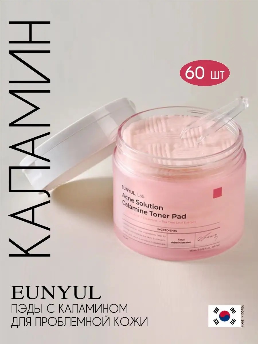 EUNYUL Тонер пэды для лица Корея с каламином обновляющие, 60 шт