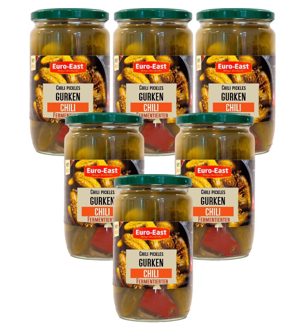 Euro-East Lot de 6 pots de concombres fermentés au piment - 660 g - Fabriqués selon la méthode traditionnelle de décapage - Concombres aigres