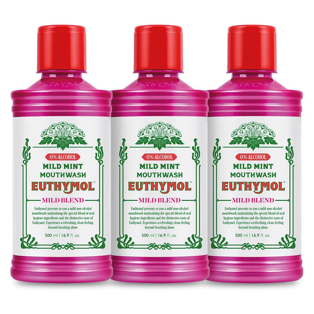 INGREDIENTS AQUA, GLYCERIN, PEG-40 HYDROGENATED CASTOR OIL, POLOXAMER 407, METHYL SALICYLATE, SODIUM BENZOATE, CITRO ACID, CETYLPYRIDINIUM CHLORIDE, THYMOL, SODIUM FLUORIDE, SODIUM SACCHAIN, MANN SODIUM THOL, SODIUM CITRATE, URSODIOL, SUCRALOSE, CI 17200, CI 15985 INSTRUCTIONS FOR USE Pour a small amount of mouthwash into a cup, rinse your mouth thoroughly and spit it out. SAFETY WARNING Do not swallow, avoid contact with eyes, seek medical attention immediately if swallowed See moreHow to use: Pour a small amount into a cap or cup. Rinse for 60 seconds morning and evening. Ingredients: AQUA, GLYCERIN, PEG-40 HYDROGENATED CASTOR OIL, POLOXAMER 407, METHYL SALICYLATE, SODIUM BENZOATE, CITRO ACID, CETYLPYRIDINIUM CHLORIDE, THYMOL, SODIUM FLUORIDE, SODIUM SACCHARIDE, SODIUM SACCHARIDE, SODIUM SACCHARIDE, IN, MENTHOLLE, SODIUM CITRATE, URSODIOL, SUCRALOSE, CI 17200, CI 15985. This product contains SODIUM FLUORIDE. Reduce plaque and promote healthy teeth and gums - Formulated with eucalyptus and thymol helps reduce plaque, ensuring clean and healthy teeth and gums. Alcohol-free formula Enjoy the benefits of an alcohol-free mouthwash that promotes a healthy oral environment without causing dryness or irritation. Distinctive, bold taste: Experience a refreshing and clean feeling with Euthymol Mouthwash's special blend of ingredients and its distinctive, bold taste. Classic British oral care brand: enhance your oral hygiene routine with Euthymol Mouthwash, a well-known brand in the UK since 1898.Euthymol Mild Mint Mouthwash 500ml x 3 INGREDIËNTEN AQUA, GLYCERIN, PEG-40 GEHYDROGENEERDE CASTOR OLIE, POLOXAMER 407, METHYL SALICYLAAT, NATRIUMBENZOAAT, CITROZUUR, CETYLPYRIDINIUM CHLORIDE, THYMOL, NATRIUMFLUORIDE, NATRIUMSACCHARINE, MANNATRIUMACHINE THOL, SODIJ UM CITRAAT, URSODIOL, SUCRALOSE, CI 17200, CI 15985 GEBRUIKSAANWIJZING Giet een kleine hoeveelheid mondwater in een kopje, spoel je mond grondig en spuug het uit. VEILIGHEIDSWAARSCHUWING Niet slikken, contact met de ogen vermijden, bij inname onmiddellijk medische hulp inroepen Meer bekijkenHoe te gebruiken: Giet een kleine hoeveelheid in een dop of een kopje. Spoel gedurende 60 seconden 's morgens en' s avonds. Ingrediënten: AQUA, GLYCERIN, PEG-40 GEHYDROGENEERDE CASTOR OLIE, POLOXAMER 407, METHYL SALICYLAAT, NATRIUMBENZOAAT, CITROZUUR, CETYLPYRIDINIUM CHLORIDE, THYMOL, NATRIUMFLUORIDE, NATRIUMSACCHARIDE, NATRIUMSACCHARIDE, NATRIUMSACCHARIDE, IN, MENTHOLLE , NATRIUMCITRAAT, URSODIOL, SUCRALOSE, CI 17200, CI 15985. Dit product bevat NATRIUMFLUORIDE. Verminder plaque en bevordert gezonde tanden en tandvlees - Geformuleerd met eucalyptus en thymol helpt tandplak te verminderen en zorgt zo voor schone en gezonde tanden en tandvlees. Alcoholvrije formule Geniet van de voordelen van een alcoholvrij mondwater dat een gezonde mondomgeving bevordert zonder uitdroging of irritatie te veroorzaken. Onderscheidende, krachtige smaak: ervaar een verfrissend en schoon gevoel met de speciale mix van ingrediënten van Euthymol Mouthwash en zijn onderscheidende, gedurfde smaak. Klassiek Brits merk voor mondverzorging: verbeter je mondhygiëne routine met Euthymol Mouthwash, een bekend merk in het Verenigd Koninkrijk sinds 1898.