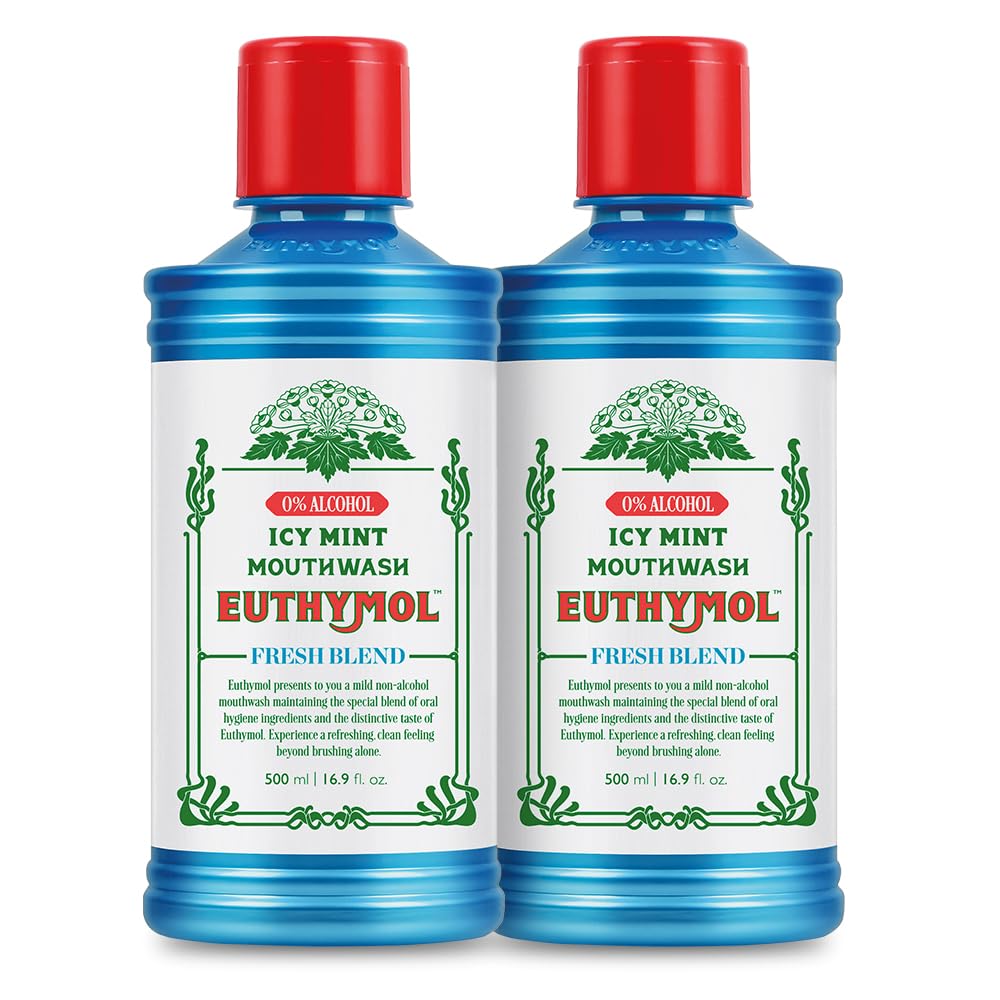 Euthymol Mouthwash Icy Mint 500ml X2 With Fluoride AlcoholFree Strong Flavour Reduces Plaque Cleaning Teeth & Gums Fresh Breath Daily Oral Care