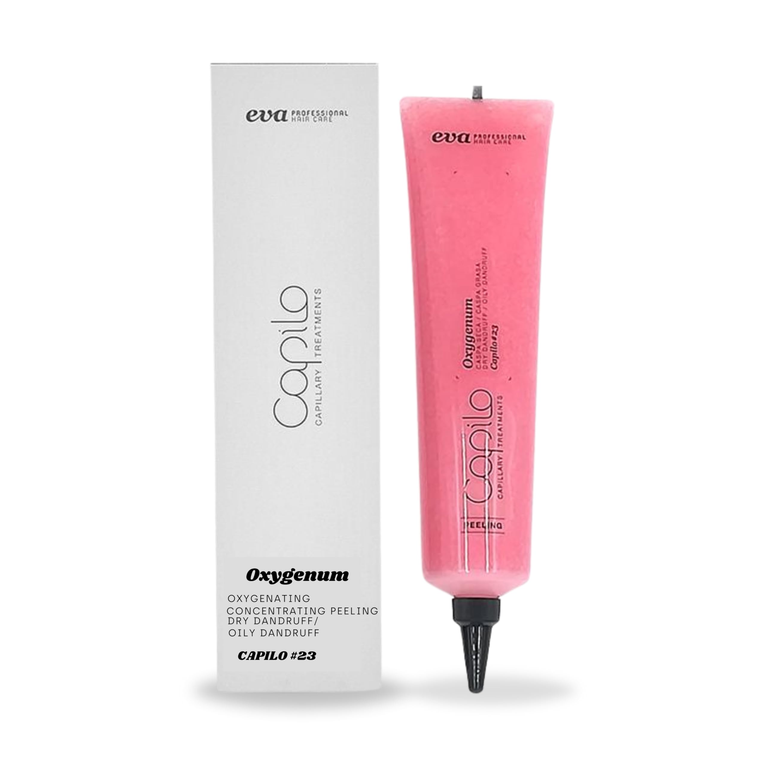 Gentle exfoliation and promotes epidermis regeneration. Cleanses and prevents the development of dandruff. Removes dead skin cells and provides high protection against dandruff. Benefits: Cleanses scalp and hair. Strengthens the natural defenses of the scalp. Removes dandruff and normalizes the sebaceous glands. Provides scalp and hair with moisture and shine. Formula: without parabens, without sulphates, without silicones, without allergens. Available in 175 ml.Without parabens, without sulphates, without silicones, without allergens. Removes dandruff and normalizes the sebaceous glands. Strengthens the natural defenses of the scalp. Cleanses scalp and hair. Concentrated oxygen peeling removes dry and greasy dandruff.Eva Professional Hair Care Peeling Oxygenum N.23 175 ml Zachte peeling en bevordert de regeneratie van de epidermis. Reinigt en gaat de ontwikkeling van roos tegen. Verwijdert dode huidcellen en biedt een hoge bescherming tegen roos. Voordelen: Reinigt hoofdhuid en haar. Versterkt de natuurlijke afweer van de hoofdhuid. Verwijdert roos en normaliseert de talgklieren. Geeft hoofdhuid en haar vocht en glans. Formule: zonder parabenen, zonder sulfaten, zonder siliconen, zonder allergenen. Verkrijgbaar in 175 ml.Zonder parabenen, zonder sulfaten, zonder siliconen, zonder allergenen. Verwijdert roos en normaliseert de talgklieren. Versterkt de natuurlijke afweer van de hoofdhuid. Reinigt hoofdhuid en haar. Geconcentreerde zuurstofpeeling verwijdert droge en vettige roos.