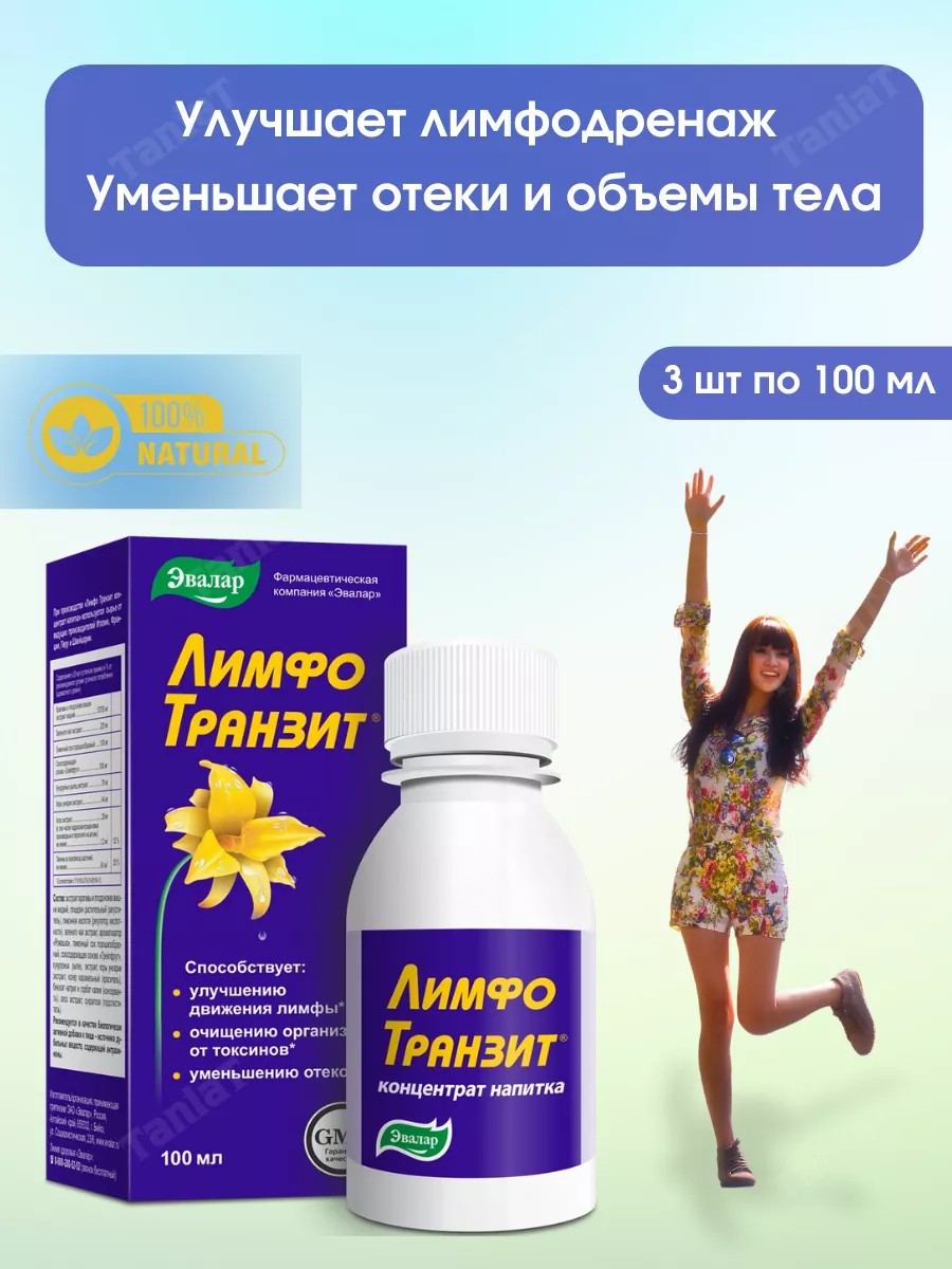 лимфо транзит концентрат напитка 100мл - Биологически активная добавка (БАД) к пище - Способствует улучшению движения лимфы, очищения организма от токсинов, снятию отеков