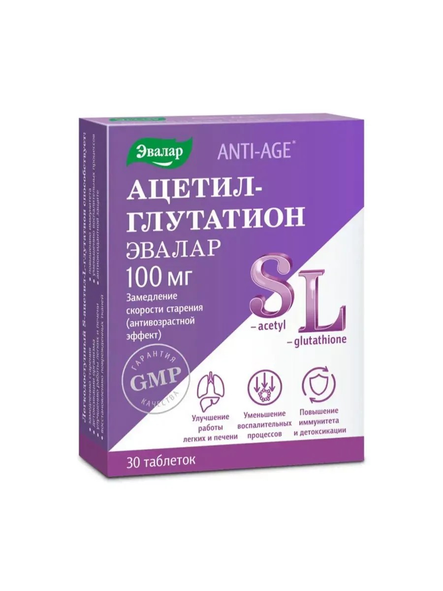 Эвалар Ацетил-Глутатион 100 мг, 30 таблеток