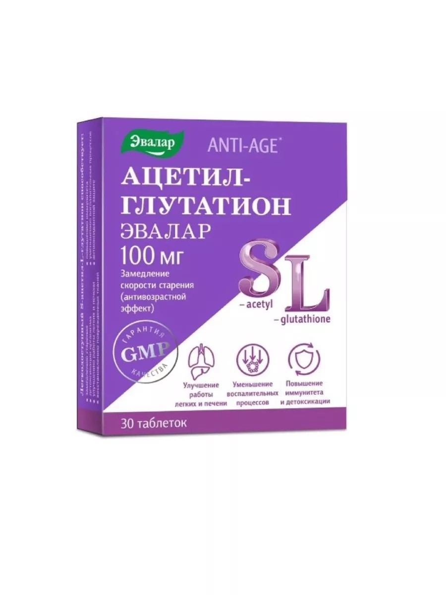 Ацетил-Глутатион Эвалар - это первый и единственный монопрепарат S-ацетил-L-глутатиона в форме таблеток в России.