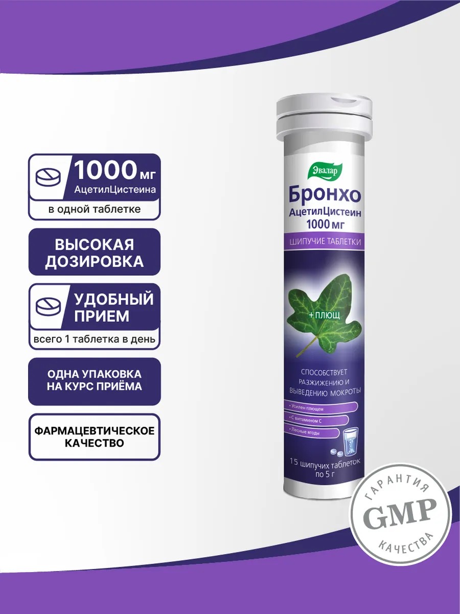 Эвалар Бронхо АцетилЦистеин, от кашля, 15 шипучих таблеток