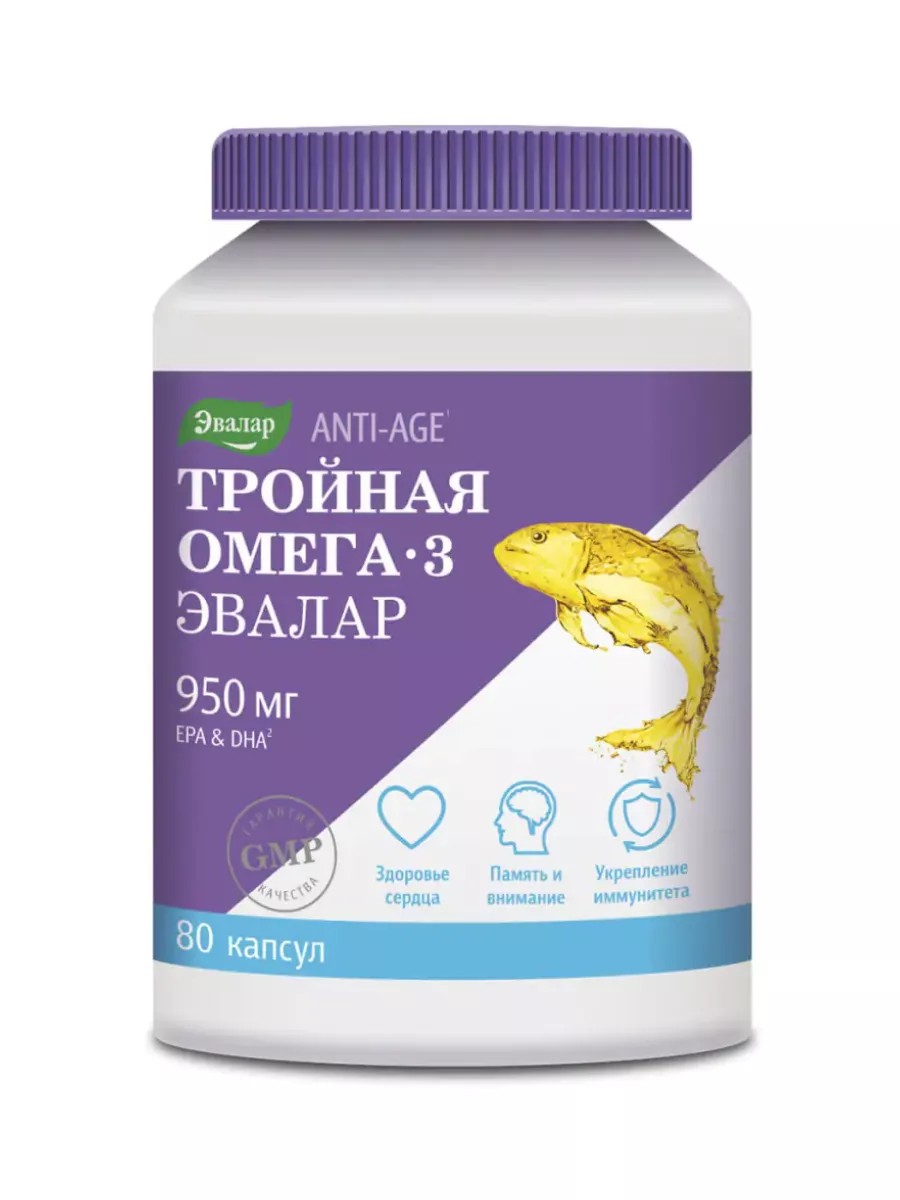 Эвалар ANTI-AGE Тройная Омега 3 капсулы 950мг 80 шт