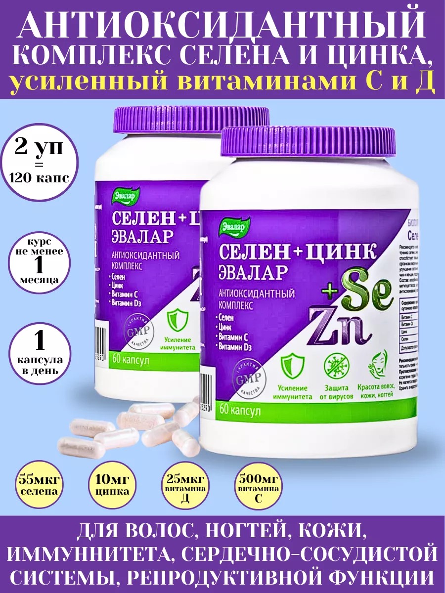 Эвалар Антиоксидантный комплекс селена и цинка 60капс*2уп