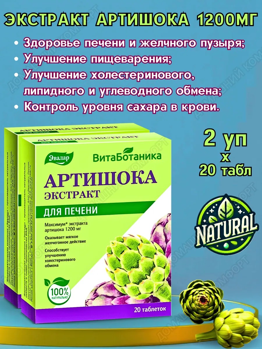 Выбирайте ВитаБотаника Артишока экстракт от Эвалар – натуральную поддержку печени, здоровья ЖКТ и общего самочувствия!