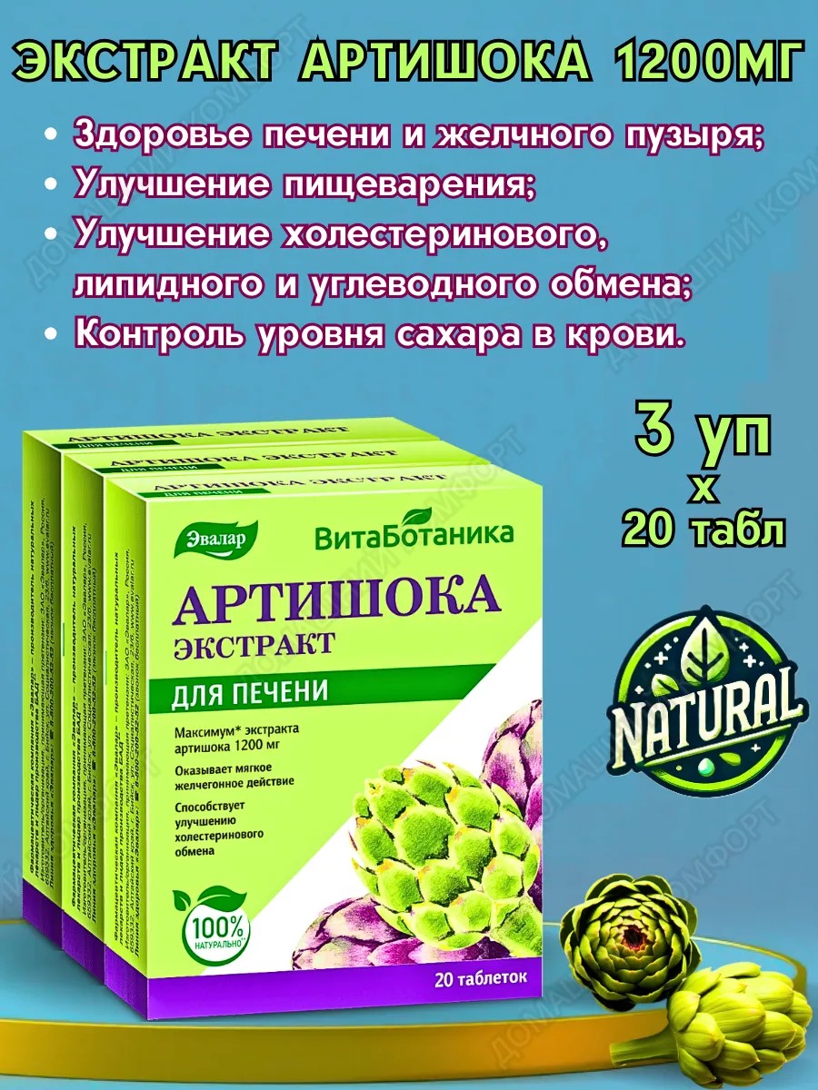 Эвалар Экстракт артишока 1200мг для печени и желчного 20таб*3уп