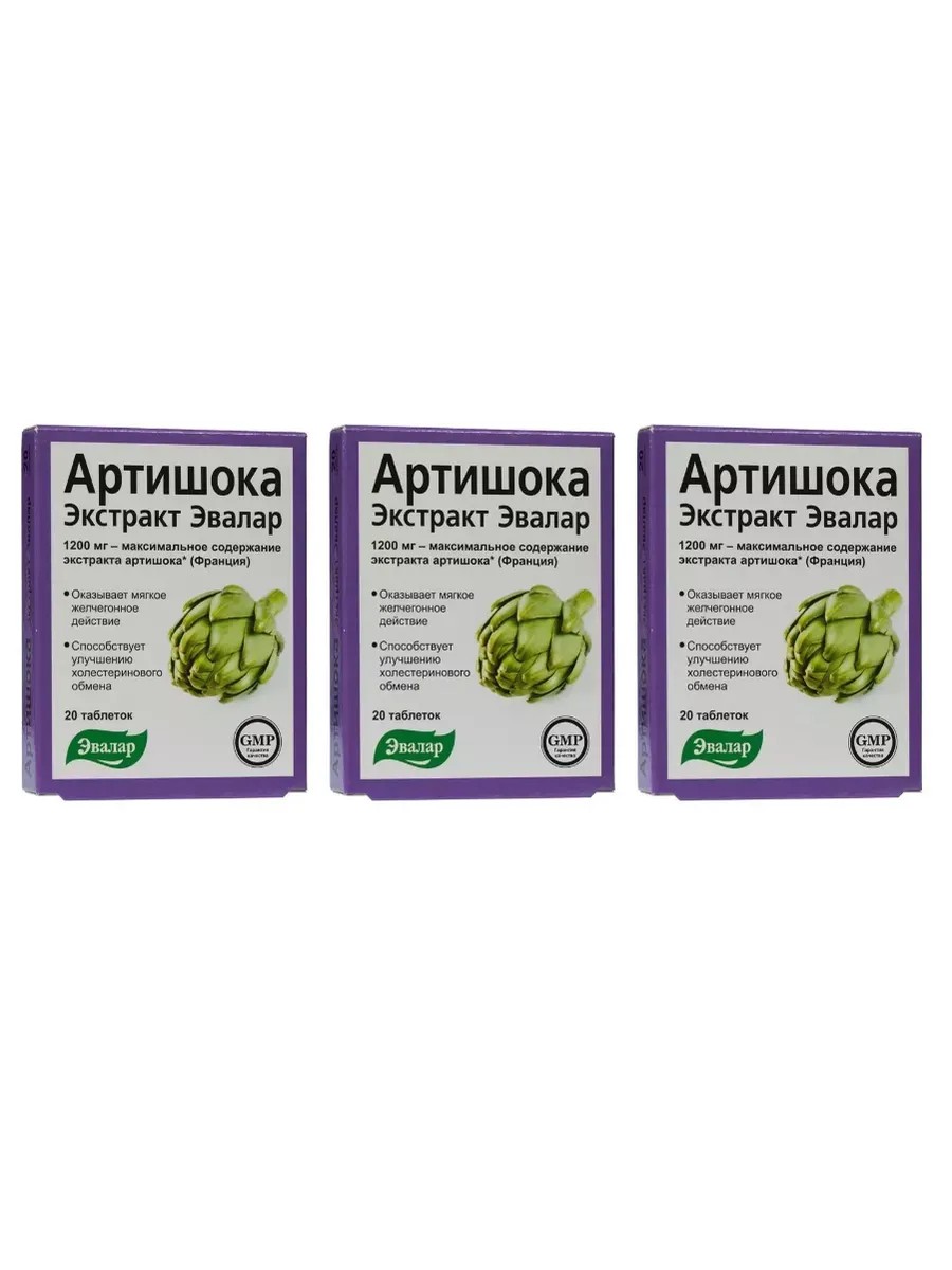 Эвалар Экстракт артишока, 20 таблеток массой 590 мг х 3 упаковки