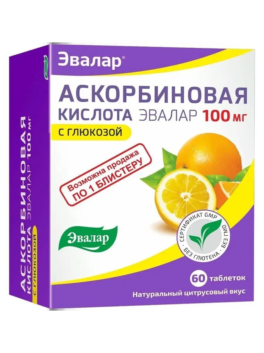 Эвалар Аскорбиновая кислота 100 мг, 60 таб