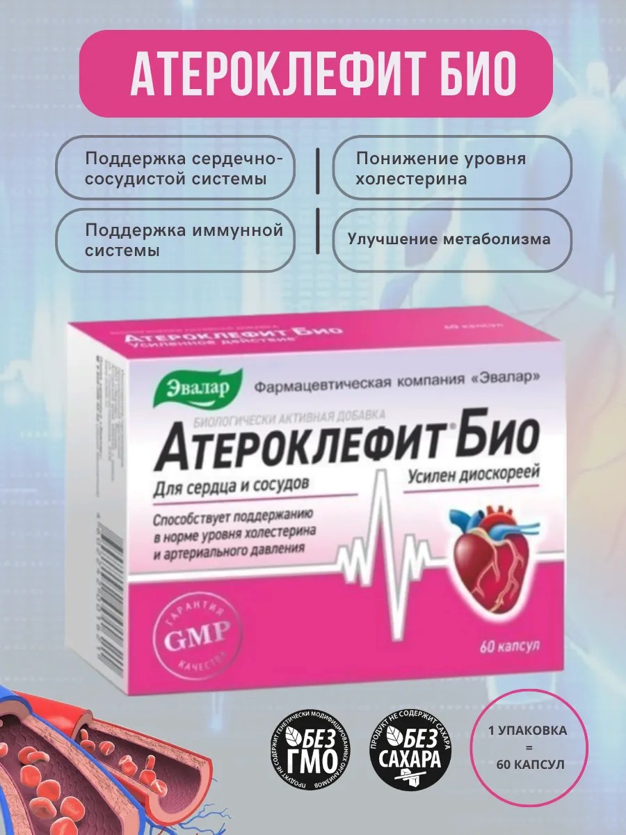 Атероклефит для сердца и сосудов рекомендуется для профилактики сердечно-сосудистых заболеваний, связанных с высоким уровнем холестерина, а также для снижения риска атеросклероза. Атероклефит Био подходит людям, ведущим активный образ жизни и заботящимся о здоровье своего сердца.