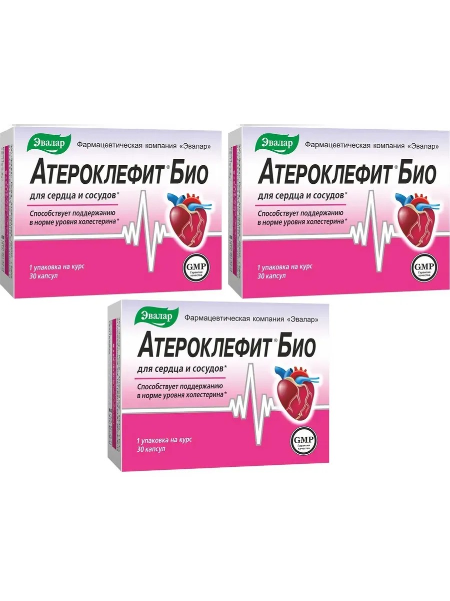 Эвалар Атероклефит Био для сердца, сосудов, 30 капс (250 мг) х 3 уп