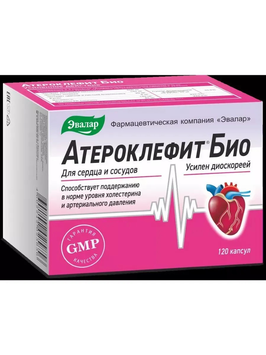 атероклефит био n120 капс. Состав: экстракт диоскореи, компоненты капсулы (пищевые добавки): желатин; оксид железа и диоксид титана (красители); аскорбиновая кислота, экстракт клевера, никотиновая кислота (витамин РР), экстракт цветков и листьев боярышника, диоксид кремния аморфный (агент антислеживающий), рутин, стеарат магния растительного происхождения (агент антислеживающий)