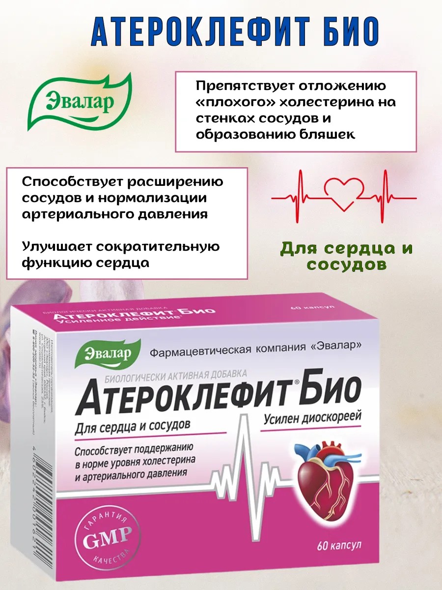 АТЕРОКЛЕФИТ БИО - Биологически активная добавка (БАД) к пище - растительное средство на основе диоскореи ниппонской и красного клевера для поддержания уровня холестерина в норме