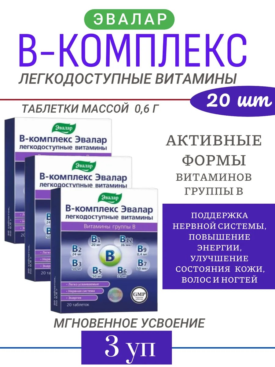 Эвалар В-комплекс легкодоступные витамины 20 табл -3уп