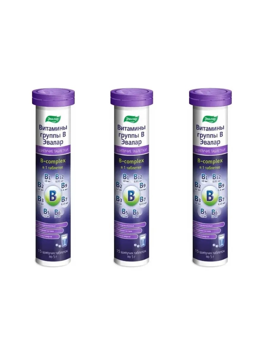 Эвалар Витамины группы В, 15 шипучих таб (5г) х 3 уп