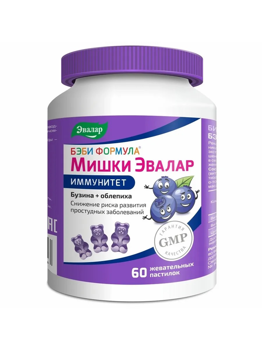 Бэби Формула Мишки Иммунитет от компании Эвалар - вкусные жевательные пастилки с бузиной и облепихой для активации и поддержки иммунитета.