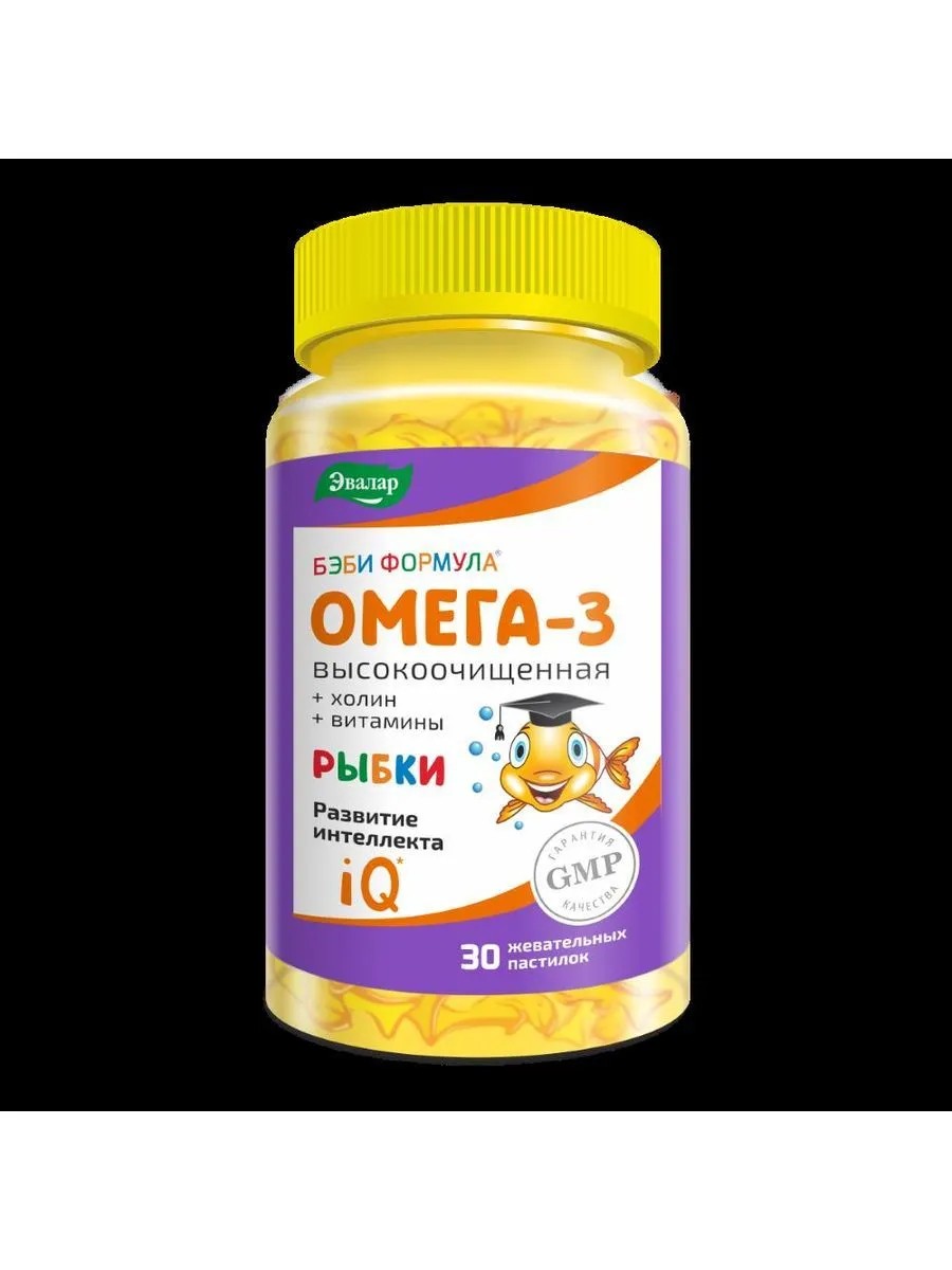 бэби формула рыбки омега-3 n30 пастилки жеват по 4,0г. способствует восполнению дефицита пнжк омега-3 (дгк) в организме ребенка и способствует улучшению работы мозга, развитию интеллекта и памяти, внимания, повышает способсность к обучению. в качестве бад к пище - дополнительный источник витаминов с, в6, в12, содержащая полиненасыщенные жирные кислоты омега-3. патока крахмальная, сахар, инулин пищевой, холина битартрат, докозагиеновая кислота омега-3, лимонная кислота, аскорбиновая кислота, ароматизатор натуральный апельсин, ароматизатор натуральный лимон, альфа-токоферола ацетат, краситель натуральный экстракт розмарина, витамины в6 и в12. для реализации населению в качестве биологически активной добавки к пище –источника холина, дополнительного источника витаминов с, в6 и в12, содержащей полиненасыщенные жирные кислоты омега-3 (докозагексаеновая кислота).
