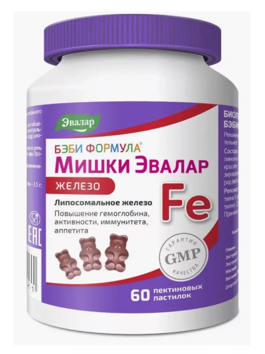 The Baby Formula Bears Evalar Iron complex, in the form of delicious gummy lozenges based on readily available liposomal iron, was created specifically to normalize hemoglobin levels and replenish iron deficiency in a child's body.