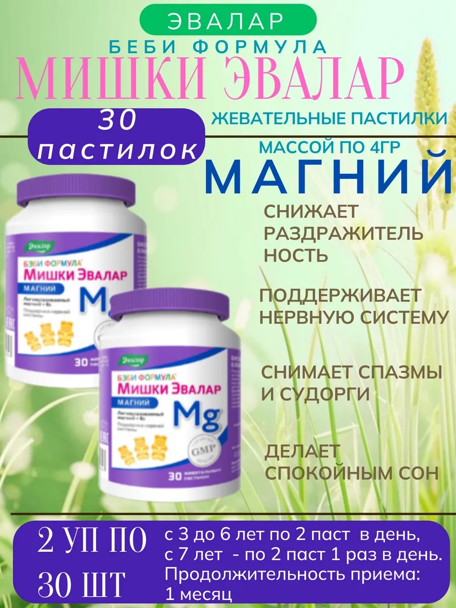 Бэби Формула Мишки Магний от компании Эвалар - это мармеладные пастилки для восполнения дефицита магния для детей с 3 лет, содержащие магний в легкоусвояемой органической форме.