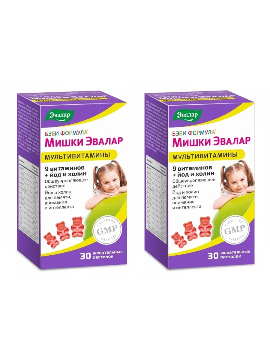 Эвалар Бэби Формула Мишки Мультивитамины, 30 пастилок (2г) х 2 уп