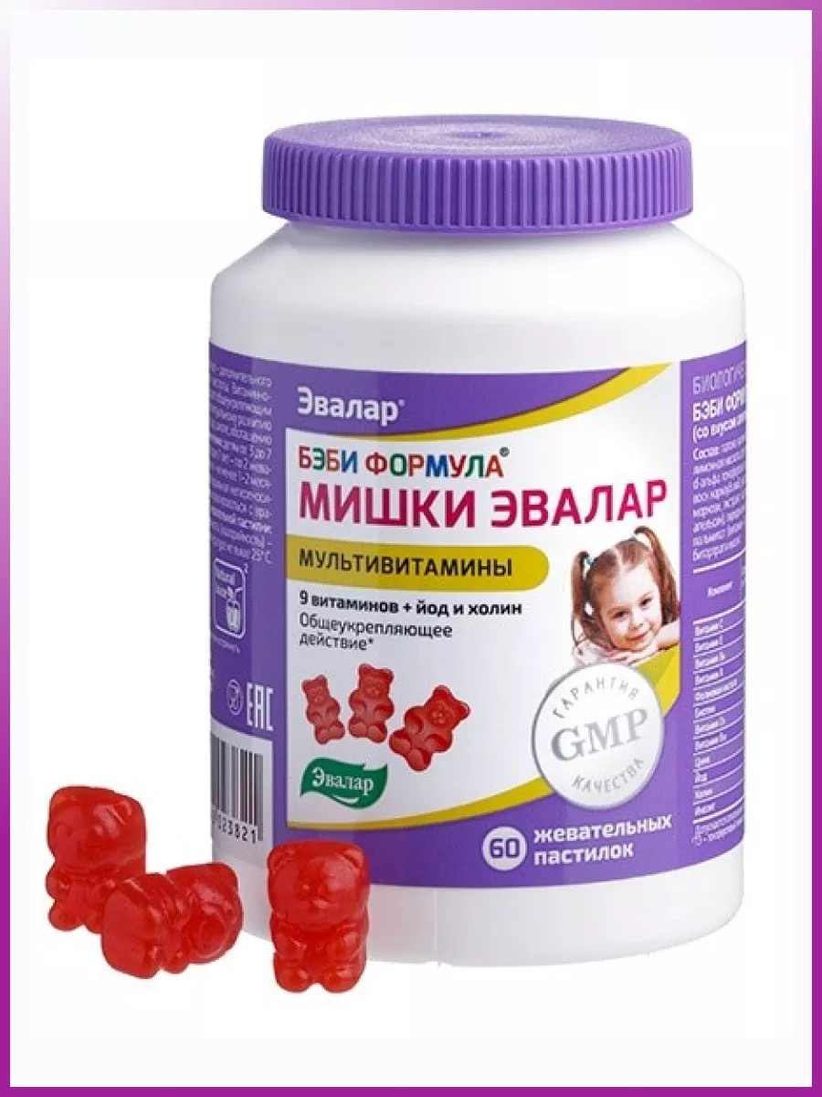 | Комплектация | Эвалар Бэби формула мишки мультивитамины №60-1шт. |