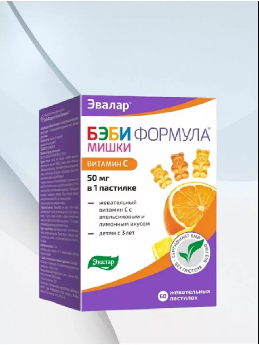 Эвалар БЭБИ ФОРМУЛА МИШКИ ВИТАМИН С 60 ПАСТИЛОК