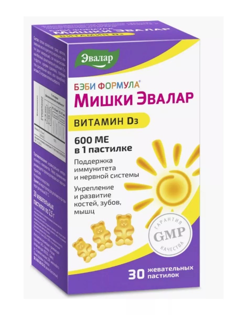Эвалар. Бэби Формула Мишки Витамин Д3, витамины для детей,30 шт
