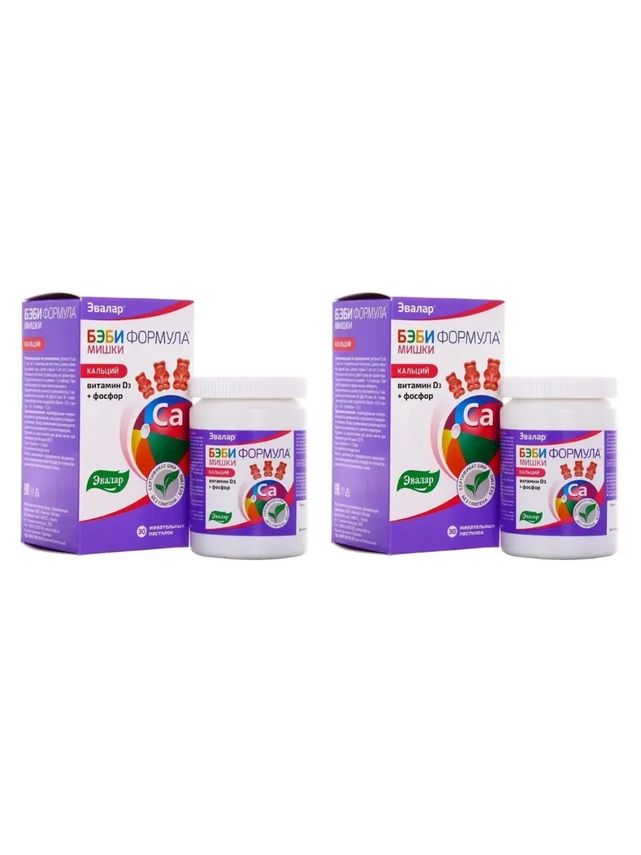 Эвалар Бэби Формула Мишки Кальций, 30 жев пастилок по 2,5 г х 2 уп