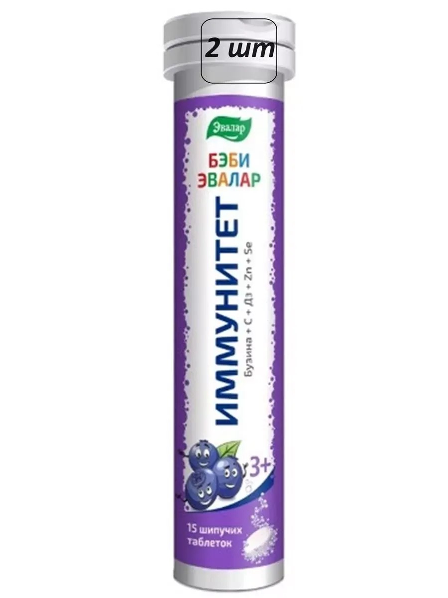 Бэби Эвалар иммунитет – это биологически активная добавка к пище (БАД) - детский шипучий напиток с соком бузины и витаминами для укрепления иммунитета. Для детей с 3 лет. Без подсластителей и искусственных добавок.Рекомендуется в качестве биологически активной добавки к пище - дополнительного источника витаминов С, D3, цинка, селена. Комплекс витаминов С, D3, цинка, селена и бузины способствует: поддержанию активности иммунной системы, эффективной профилактике простудных заболеваний, в том числе в сезон простуд, в период адаптации к детскому саду, школе; снижению риска развития простудных заболеваний, повышению устойчивости организма к вирусным инфекциям, облегчению самочувствия при простуде и ускорению выздоровления. Таблетки шипучие массой 5,0 г каждая, 15 штук в упаковке. Растворить 1 таблетку в 100 мл (1/2 стакана) воды комнатной температуры. Детям с 3-х лет принимать по 1 таблетке 1 раз в день. Продолжительность приема - не менее 1 месяца. Перед применением рекомендуется проконсультироваться с врачом.