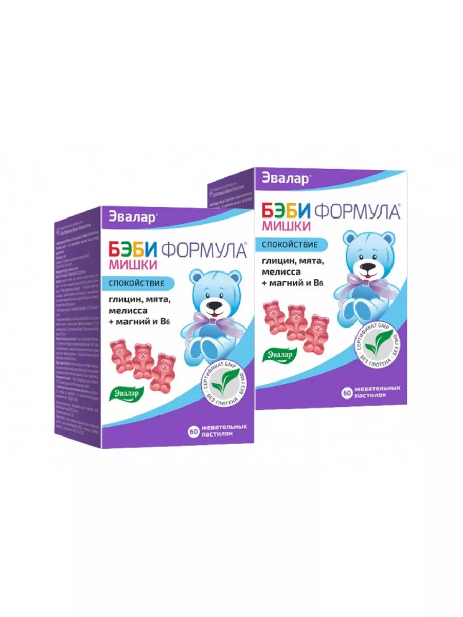 Эвалар Бэби формула Мишки спокойствие 60 пастилок 2 упаковки