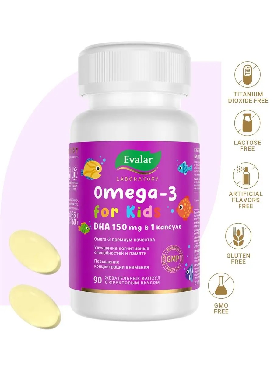 Бэби Эвалар Омега 3 ДГК, витамины для детей, 90 капсул