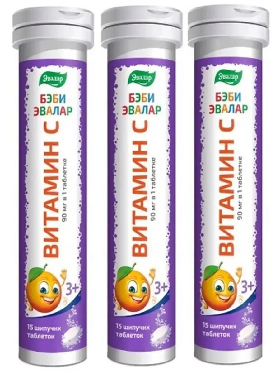 Витамин С в форме шипучего напитка в высокой дозировке.Для детей с 3-х лет. Без подсластителей и искусственных добавокСпециально для восполнения недостатка витамина С для детей с 3 лет компания «Эвалар» разработала витаминный препарат Бэби Эвалар Витамин С в форме растворимых таблеток для приготовления вкусного шипучего напитка.Каждая таблетка содержит высокую дозировку витамина С - 90 мг. Благодаря этому Бэби Эвалар Витамин С способствует:• Укреплению иммунитета, в том числе в сезон простуд• Активной борьбе с вирусами• Повышению устойчивости организма к вирусным инфекциям• Снижению риска развития простудных заболеваний
