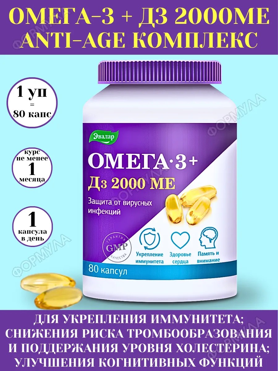 Эвалар Омега-3 + D3 2000 МЕ – забота о вашем здоровье каждый день! Поддержите свой организм с проверенным качеством от российского производителя.