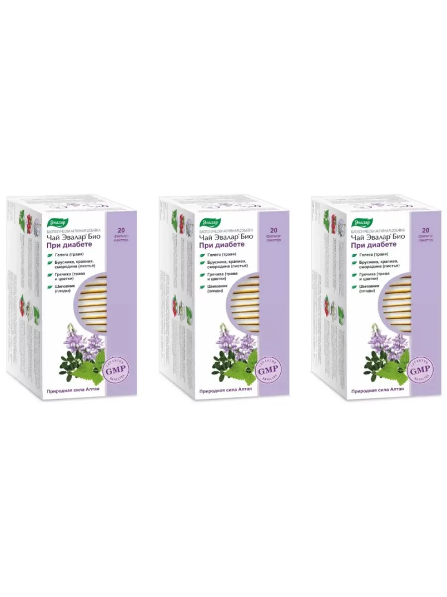 Эвалар Био Чай при диабете (20 фильтр-пакетов по 2 г) х 3 упаковки