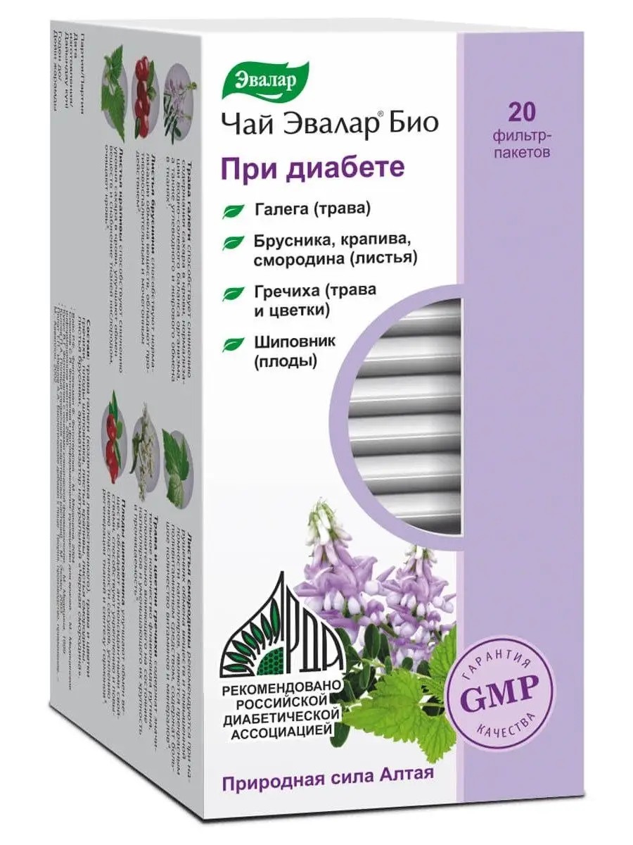 Trade namebiologically active food supplement "Evalar Bio Tea for Diabetes" (filter bags of 2.0 g)