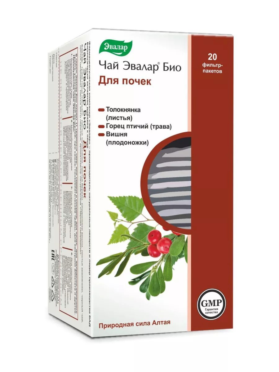 Чай эвалар био для почек - это биологически активная добавка (БАД) к пище - натуральный продукт, предназначенный для поддержки здоровья мочевыводящей системы. В состав чая входят травы, которые традиционно используются для очищения почек и улучшения их функции. Каждый пакетик содержит комбинацию травы горца птичьего, листьев березы, плодоножек вишни, листьев мяты перечной, листьев толокнянки и листьев смородины черной. Чай эвалар био для почек имеет приятный вкус и аромат, а также обладает полезными свойствами, которые могут помочь сохранить здоровье мочевыводящей системы. Продукт упакован в фильтр-пакеты, что облегчает его приготовление и использование.
