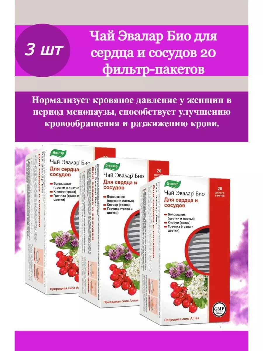 ЭВАЛАР Чай Био для сердца и сосудов 20 ф пак 3 уп