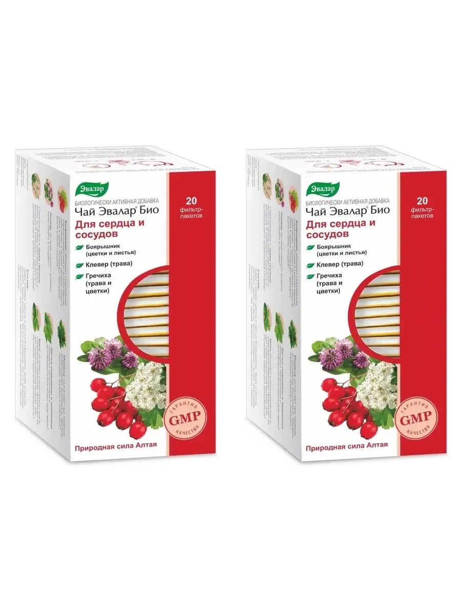 Эвалар Био Чай для сердца, сосудов, 20 фильтр-пакетов (1,5г) х 2 уп