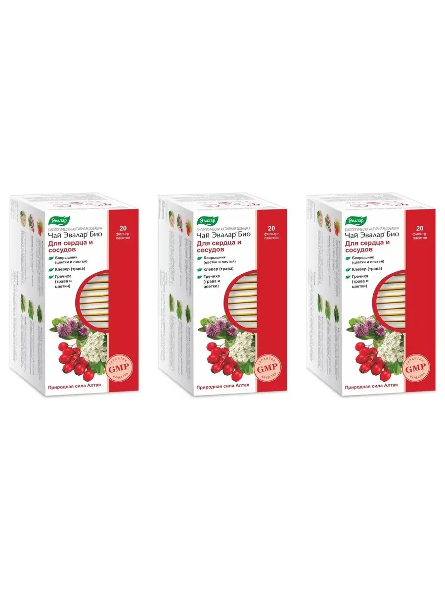 Эвалар Био Чай для сердца, сосудов, 20 фильтр-пакетов (1,5г) х 3 уп