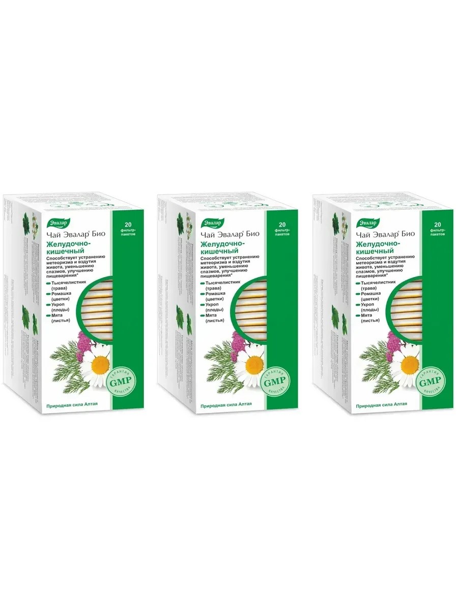 Эвалар Био Чай желудочно-кишечный, 20 фильтр-пакетов (1,8г) х 3 уп