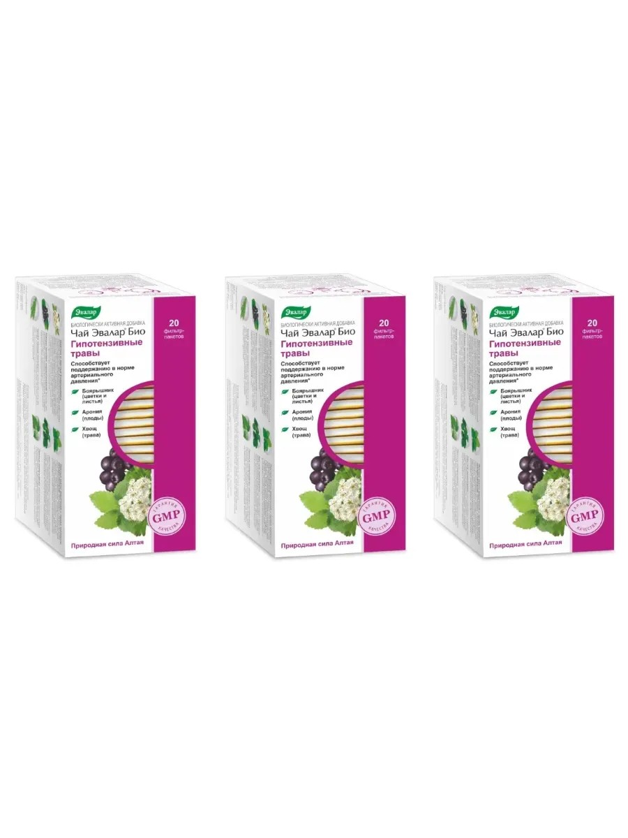 Эвалар Био Чай гипотензивные травы, 20 фильтр-пакетов (1,5г) х 3 уп