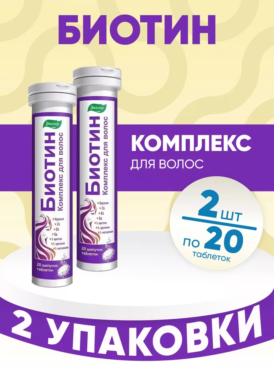 Биотин Комплекс для волос Эвалар. 2 уп. по 20 таб