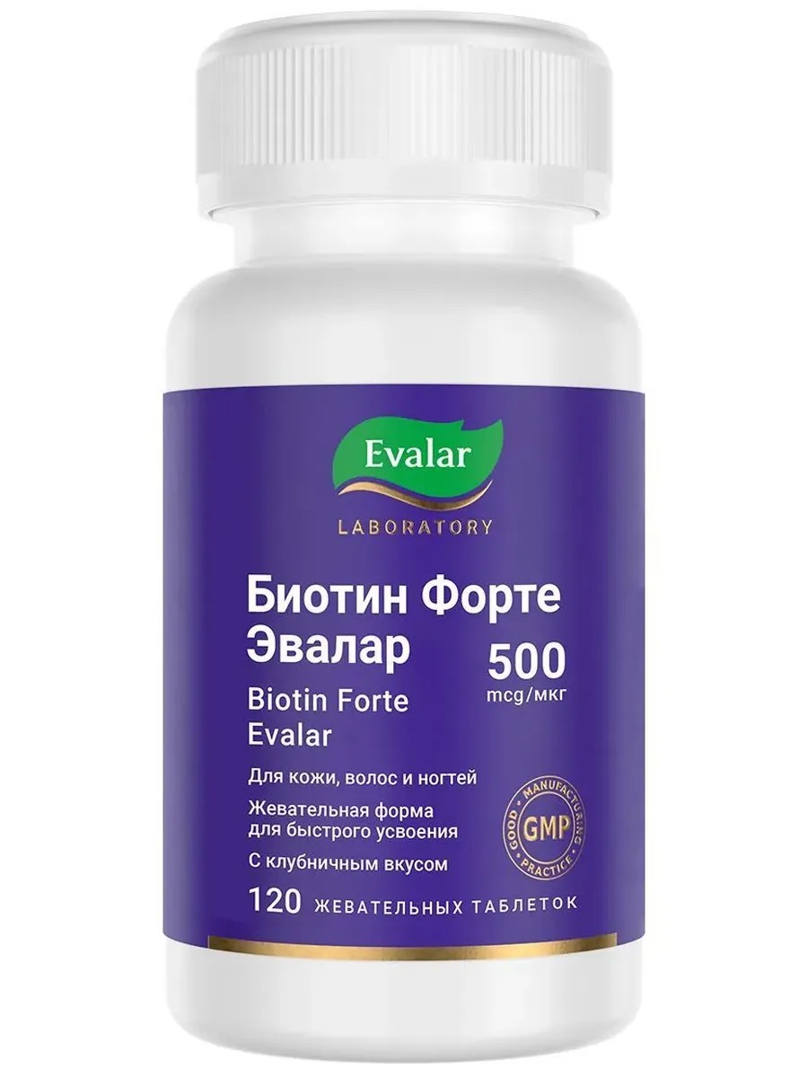 | Trade name | Biotin forte Evalar 500 mcg dietary supplement for food "Biotin forte Evalar 500 mcg" / "Biotin forte Evalar 500 mcg". |