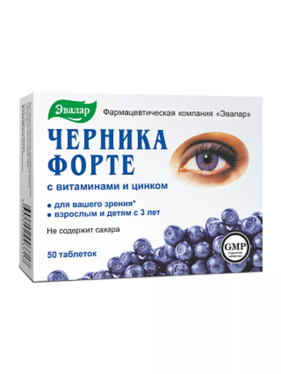 Эвалар Черника форте витамины и цинк 50 шт