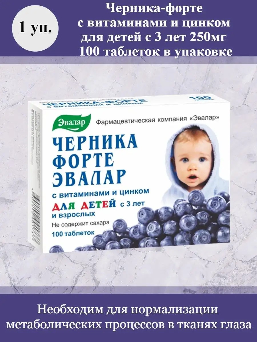 Эвалар Черника-форте д детей с 3лет 100тб 250мг 1 уп