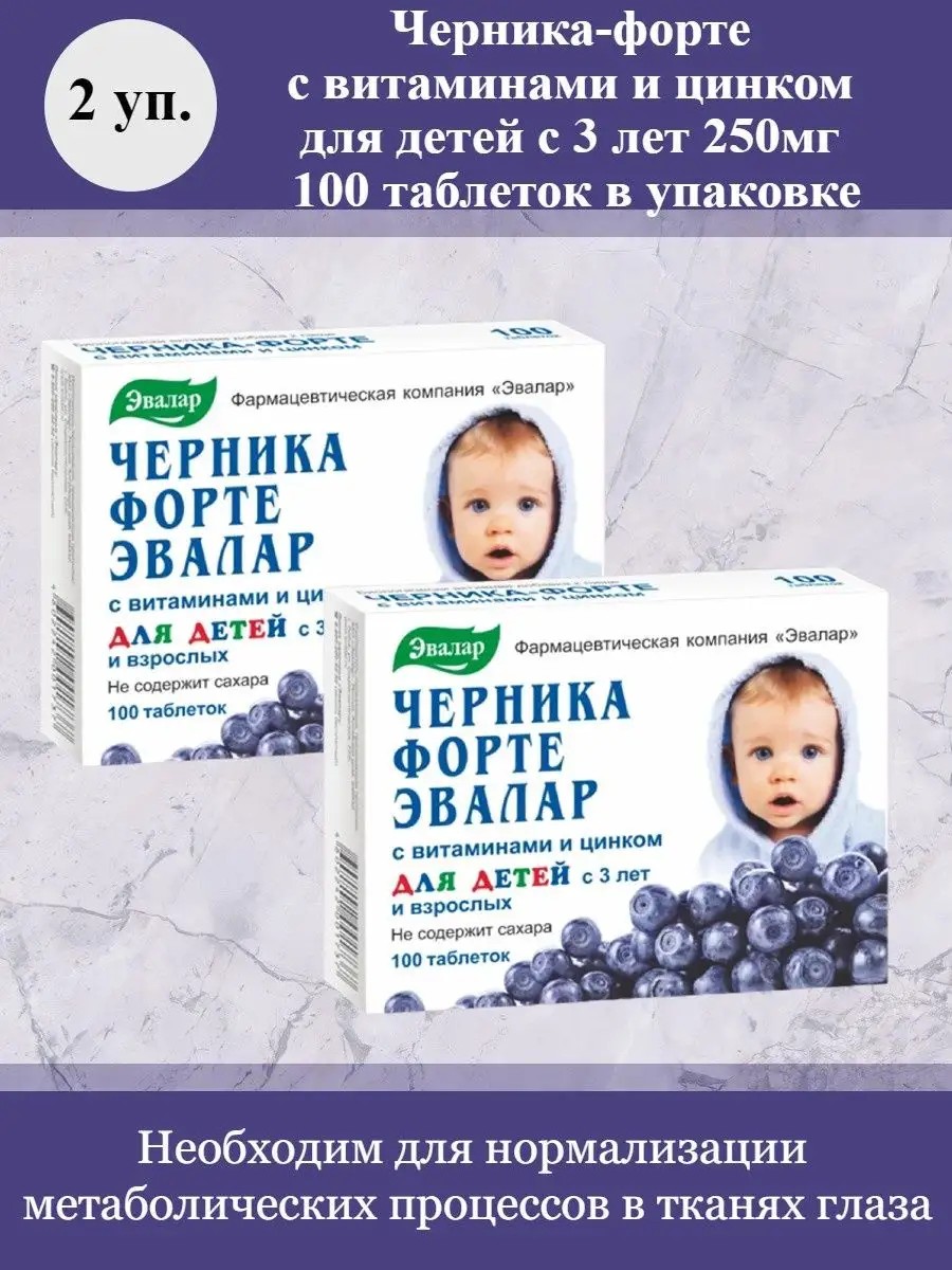 Эвалар Черника-форте д детей с 3лет 100тб 250мг 2уп