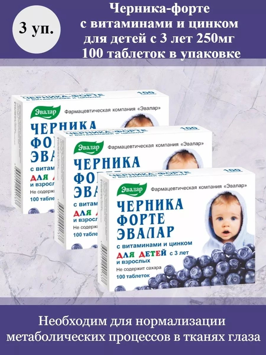 Эвалар Черника-форте д детей с 3лет 100тб 250мг 3 уп